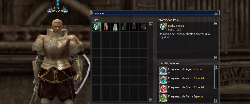 Dentro de la Lucky Box, obtendras de manera aleatoria una de las 5 cloacks disponibles de nivel 1, que aumentarán +1 de (DEX, WIT, STR, INT, CON) dependiendo cual te toque.